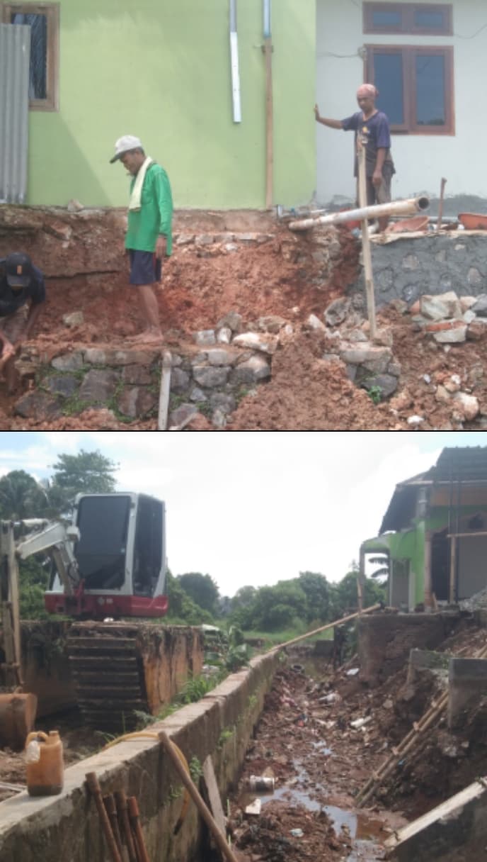 Dampak dari pekerjaan proyek tersebut juga dirasakan oleh warga sekitar. Salah satu warga, Bapak Iin, mengeluhkan dinding pondasi rumahnya mengalami ambles yang diduga akibat aktivitas penggalian dan pengerjaan saluran air yang dilakukan terlalu dekat dengan bangunan rumah warga.