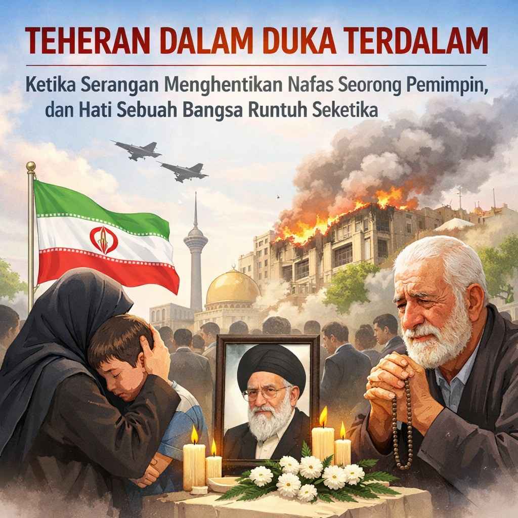 Iran kini berdiri dalam sunyi yang berat. Bukan sunyi karena tidak ada suara, tetapi sunyi karena terlalu banyak luka yang tidak mampu diungkapkan. Sebuah bangsa kini berjalan dalam bayang-bayang kehilangan, mencoba memahami bagaimana dunia bisa berubah begitu cepat, begitu dingin, dan begitu kejam.