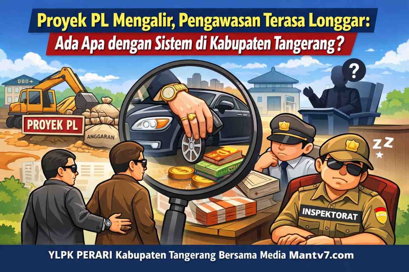 Mantv7.com | Tangerang — Pembangunan digenjot tanpa jeda. Proyek Penunjukan Langsung (PL) terus mengalir. Di atas kertas, sistem tampak hidup, bergerak, bahkan terlihat rapi. Namun di balik itu, ada satu elemen yang perlahan kehilangan daya gigitnya: pengawasan. Ia tidak hilang, tetapi melemah. Tidak runtuh, namun seperti dilonggarkan. Dan di celah itulah, kepercayaan publik mulai terkikis pelan, tapi pasti.