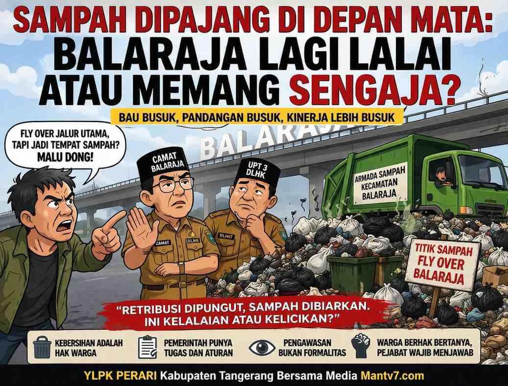 Mantv7.com | Tangerang — Siapa pun yang melintas di Fly Over Balaraja pasti melihat dan mencium hal yang sama: tumpukan sampah di bibir jalan protokol. Bukan kecil, bukan sebentar. Baunya menyengat, pemandangannya mengganggu, dan anehnya, ini terjadi sudah bertahun-tahun tanpa perubahan berarti. Pertanyaannya sederhana tapi menampar: kenapa titik kumpul sampah harus di situ? Di depan wajah Balaraja, di jalur utama, di tempat yang dilalui ribuan orang setiap hari. Ini bukan lokasi tersembunyi. Ini titik yang semua orang lihat. Namun fakta di lapangan tetap sama. Sampah tidak bergeser, bau tetap ada. Di titik ini muncul temuan sementara di tengah masyarakat: apakah pengawasan hanya berjalan di atas kertas?